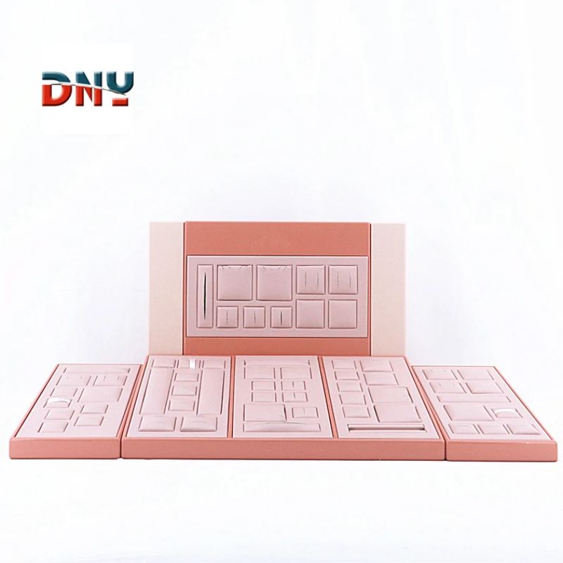 | P/N: | Factory custom size pink pu leather jewelry display stand Simple ring bracelet display set pu leather wrapped sponge |